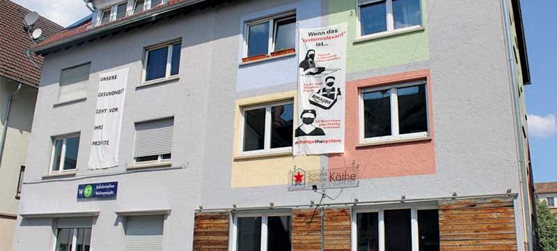Das Soziale Zentrum Käthe, ein selbstverwaltetes, politisches Hausprojekt, vereint Veranstaltungsräume, einen Infoladen und kollektives Wohnen unter einem Dach. 2012 erwarben und sanierten Aktivist*innen das Haus in der Heilbronner Innenstadt.